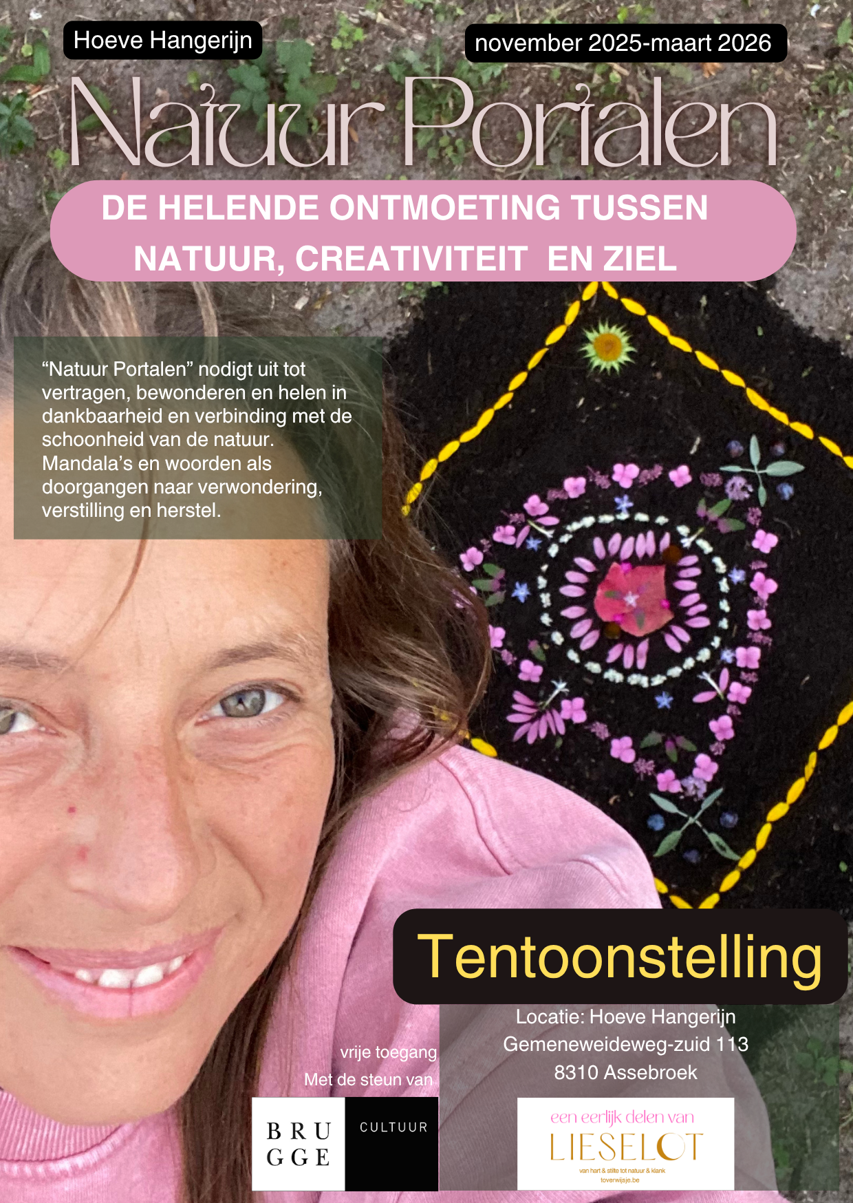 In het koetshuis en de gang van zaal de doening op Hoeve Hangerijn kan je de tentoonstelling bezoeken, dagelijks (minimum) open van 9u30 tot 20u. Vrije toegang.