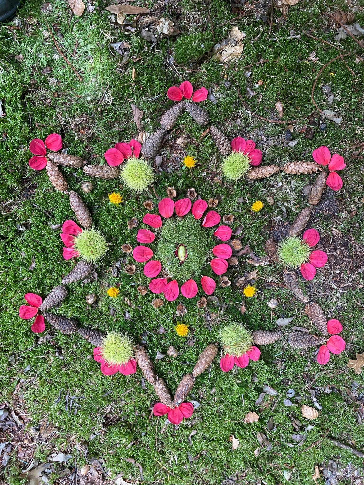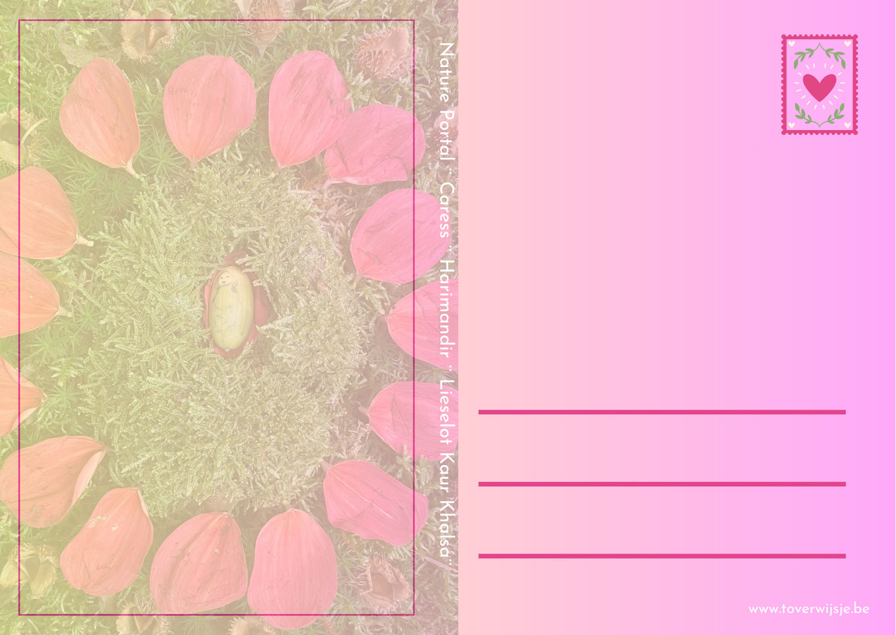 Een zachte omhulling, een bedje van mos, troost en vriendelijkheid, kortom voedende liefde, dat straalt uit deze portaalkaart.